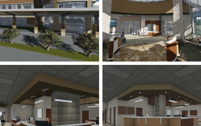The new 2-story, 42,442 SF medical office building will consist of brick, glass, and metal panel exterior. The building features a cantilevered steel and glass