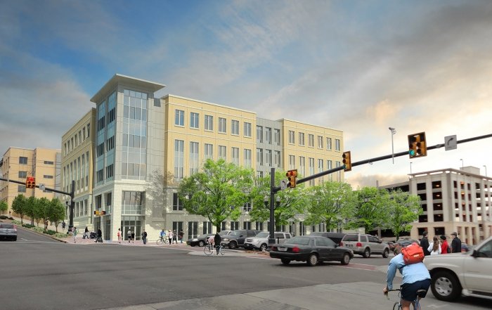 The new 2-story, 42,442 SF medical office building will consist of brick, glass, and metal panel exterior. The building features a cantilevered steel and glass